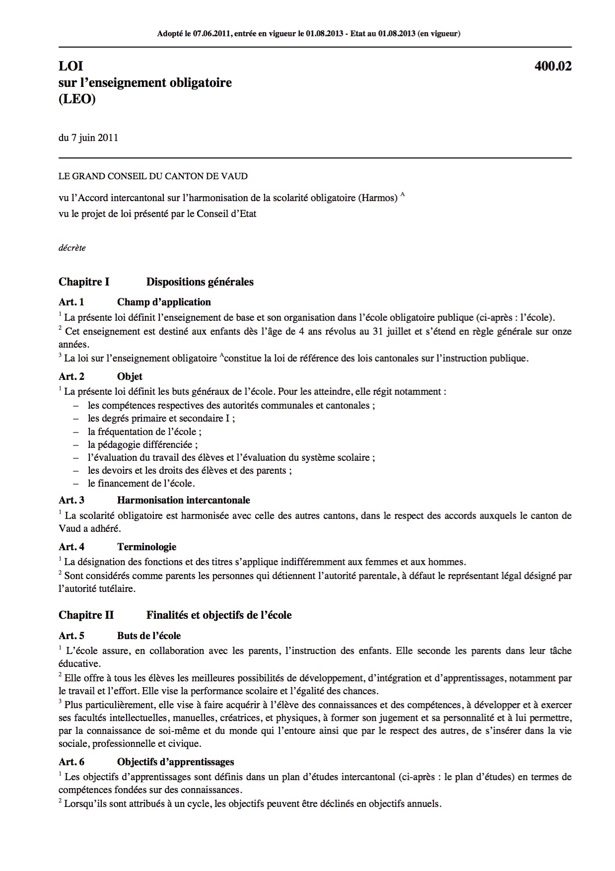 Values in the fine print? The law for compulsory education (Loi sur l’enseignement obligatoire) in Vaud, Switzerland